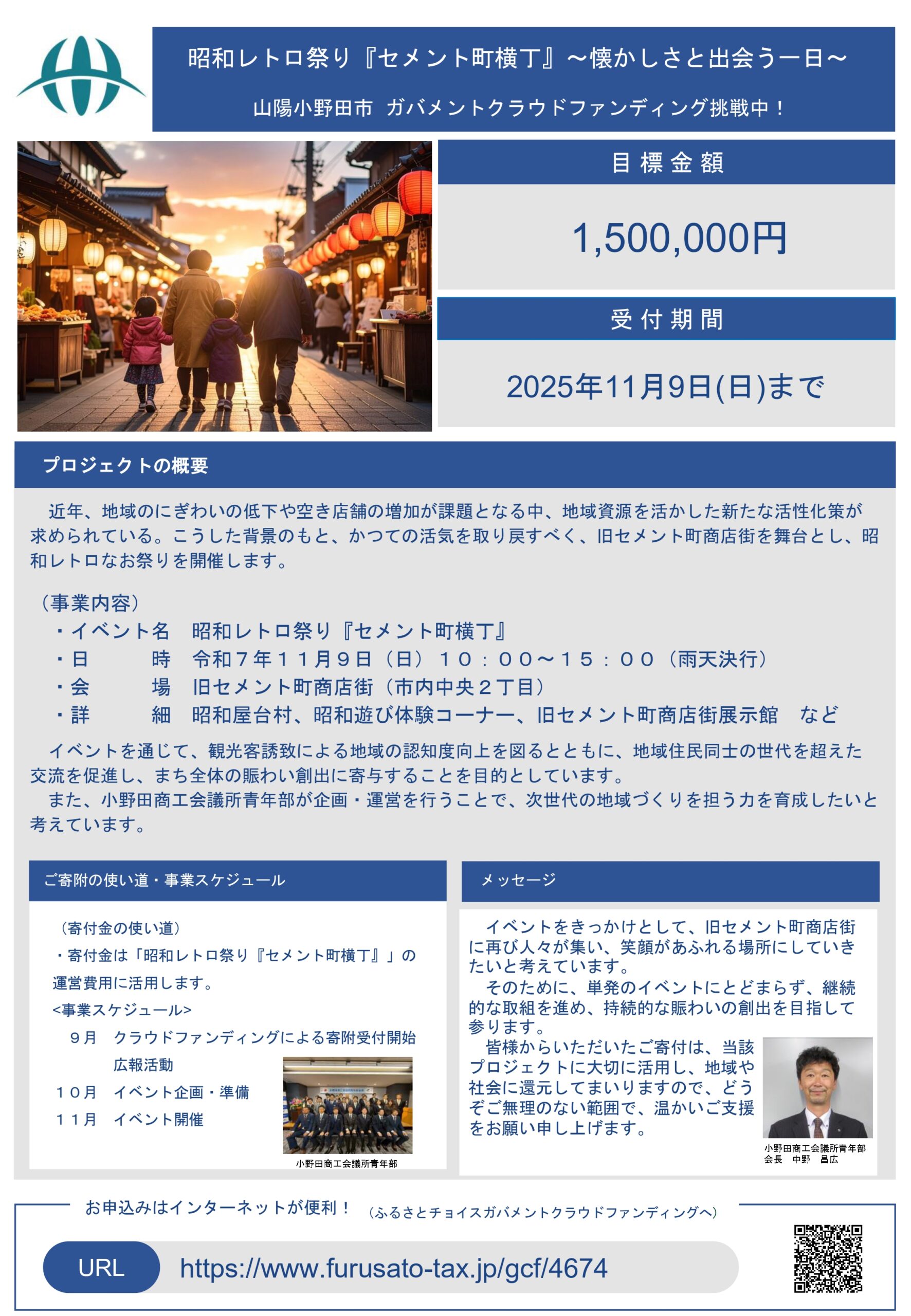 11月9日(日)、旧セメント町商店街にて昭和レトロ祭り『セメント町横丁』を開催致します。